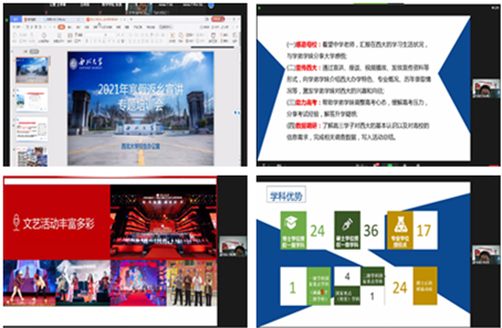 招生办公室潘超老师为实践团队做“西大精神,星火燎原”招生宣讲专项培训。潘老师介绍了西大发展史、往年招生计划、学科优势、校园文化等情况以及返校宣讲注意事项。鼓励我校学生回访高中母校,讲述西大故事、展现西大特色、宣扬西大精神、传播西大能量,开展多样化宣讲活动,进一步深化我校与各地中学的友谊,鼓励莘莘高中学子积极报考西大。