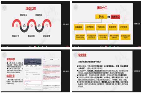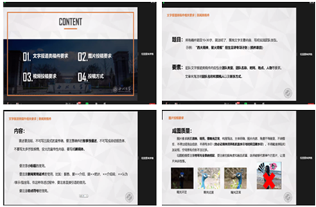 朱梦鹤围绕本次社会实践的新闻宣传工作进行了培训说明。她希望同学们能够深入实践地了解并感受感悟党领导人民建设祖国新的伟大成就,领悟习近平新时代中国特色社会主义思想的实践伟力,在撰写新闻稿件时,既要保证规范化和时效性,也要记录实践的心得和感悟,可通过实践纪实视频等形式丰富实践成果,结合自己的专业知识和所见所闻有所总结思考。她强调各实践队务必要重视宣传工作,积极向校内平台及省内外各大媒体投稿,运用各类平台加大宣传力度。随后朱梦鹤讲解了不同媒体类型具体的投稿要求。