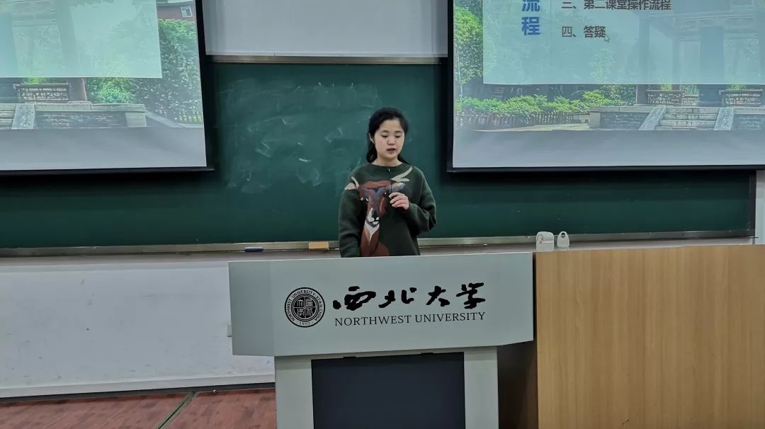 交流会后,牛泽颖对“第二课堂成绩单”制度进行了简要说明,针对西北大学“团聚西大”第二课堂信息管系统进行了简单的操作培训,详细讲解了社会实践版块的操作流程,并与院团委组织委员刘德平进行了现场答疑。