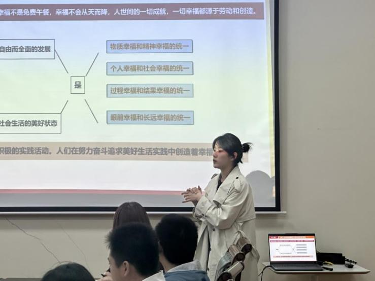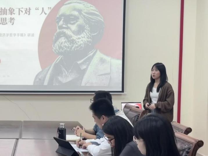 郭颖慧同学以“实践到底是什么”引入,向同学们介绍了《关于费尔巴哈的提纲》(下称《提纲》)的理论价值、历史背景以及费尔巴哈的个人简介,并为同学们解读《提纲》的具体内容,帮助大家理解马克思主义实践观的内涵,明确学习哲学的意义,激发同学们的潜能,鼓励大家投身于实践中,将理论知识与实际行动紧密结合,为美好生活而奋斗,实现个人自由而全面的发展。