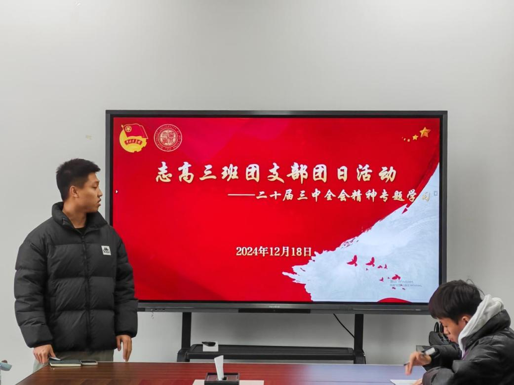 ”第十七期大学生骨干培训班志高3班团支部于12月18日13:00在东学楼北601贾平凹研究中心开展了学习党的二十届三中全会精神专题学习会。学习会包括集体学习、知识问答、交流讨论三个部分,全体团员积极参与,学习会由志高3班团支部书记杜雨亭主持。