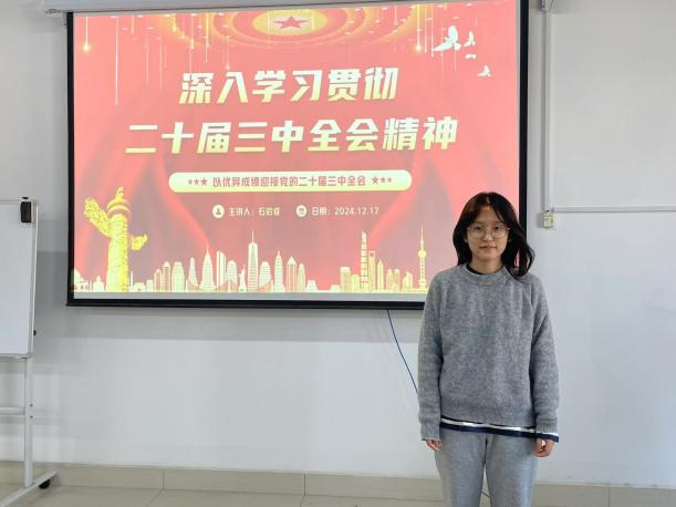 ”第十七期大学生骨干培训班逐梦2班开展“深入学习贯彻二十届三中全会精神”专题学习,会议由石启睿同学主持,逐梦2班全体学员参加。