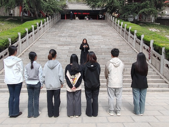 祭扫活动由班长徐影同学主持,14时整,祭扫活动在庄严的国歌声中正式拉开帷幕,同学们肃立在杨虎城将军烈士陵园广场中央,雄壮的《义勇军进行曲》响起,同学们神情庄重,放声高唱,激昂澎湃的歌声在烈士陵园上空飘扬,每个人眼中都闪烁着坚定的光芒。专业讲解员为学员们详细讲述了杨虎城将军波澜壮阔的一生。从少年时期投身革命,到参与护国战争;从主政陕西造福一方,到发动西安事变力促抗日民族统一战线形成,杨虎城将军以"苟利国家生死以,岂因祸福避趋之"的爱国情怀,为民族解放事业做出了不可磨灭的贡献。学员们认真聆听,重温了杨虎城将军的生平事迹。将军为民族存亡挺身而出,其爱国精神与历史担当深深震撼了在场同学。