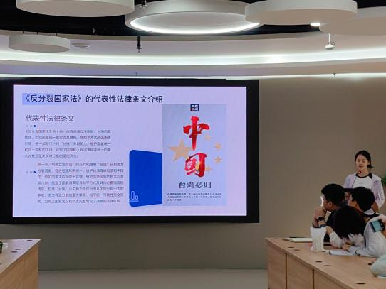 活动伊始,王淳怡同学通过深入浅出的讲解引导学员们全面认识了国家安全的多维度内涵,并强调了国家安全的重要性。随后,她详细解读了总体国家安全观的核心内容与实践意义,加深同学们对总体国家安全观的理解。同时,分析《反分裂国家法》在维护国家统一和领土完整中的重要作用,并鼓励当代青年增强国家统一责任感,积极参与到国家统一的各项事业中,为维护国家安全贡献自己的力量。