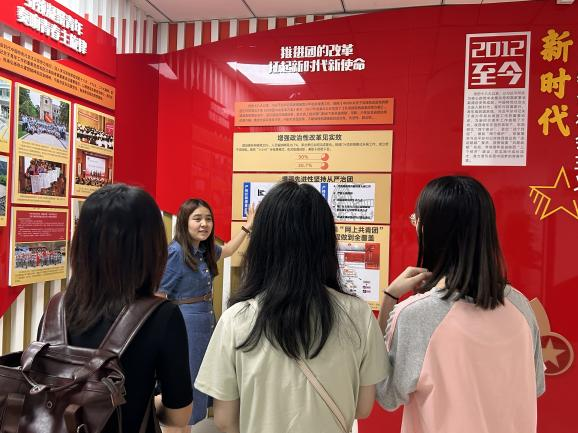 随后,学员们重点参观了新时代共青团改革成果展区。“增强政治性、先进性、群众性”的醒目标语引发了大家的热烈讨论。展板通过翔实的数据和案例,展示了团省委在基层团组织改革、“网上共青团”建设、团青比例优化等方面取得的扎实成效,如通过“专挂兼”干部配备模式推动改革全覆盖,利用信息化手段实现青年服务“零距离”等,使学员们深切感受到共青团与时俱进、“破圈突围”的坚定决心与有力步伐。