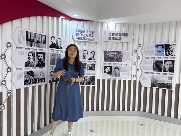 在团史馆宣讲员的引导下,学员们首先在“前言”展板前驻足凝视。展板清晰呈现了1922年中国社会主义青年团成立、1924年陕西地方团组织建立等关键历史节点,串联起陕西共青团“党有号召、团有行动”的百年奋斗历程,为学员们勾勒出共青团紧跟党走、矢志不渝的历史脉络。