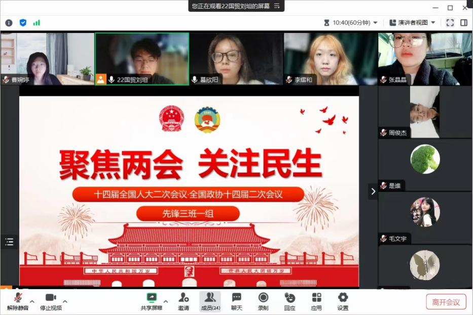 为传达学习、贯彻落实2024年全国两会精神,引导青马学员准确把握、深刻领悟“两会”的会议内容与精神实质,2024年3月18日,西北大学“江南体育平台靠谱吗 ”第十六期大学生骨干培训班先锋3班线上召开了“聚焦两会,关注民生”学习全国两会精神主题团日活动。会议由刘坦同学主持,先锋3班全体学员参加。会上,刘坦同学首先向学员们介绍了什么是“两会”,随后又分别从“两会”的发展历史、“两会”...