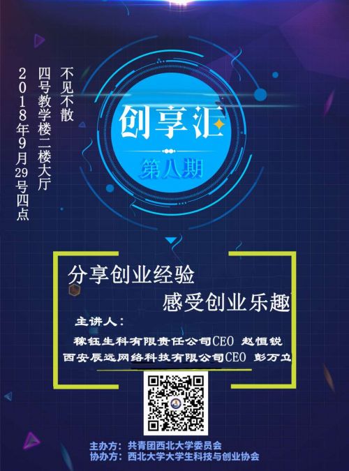 9月29日下午,由校团委主办、大学生科技与创业协会承办的第八期创享汇在大学生“三创”空间孵化基地成功举行,本次创享汇以“分享创业经验,感受创业乐趣”为主题。(活动海报)来自西安辰远网络科技有限公司的项目负责人彭万立做了题为“如何从小到大”的…