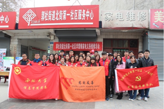 3月5日,在毛主席“向雷锋同志学习”题词发表54周年暨第18个中国青年志愿者服务日来临之际,由信息学院团委、陕西省慈善文化研究中心主办,信息学院电脑义务维修站承办“学习雷锋好榜样 情系居民传爱心”家电和电脑义...